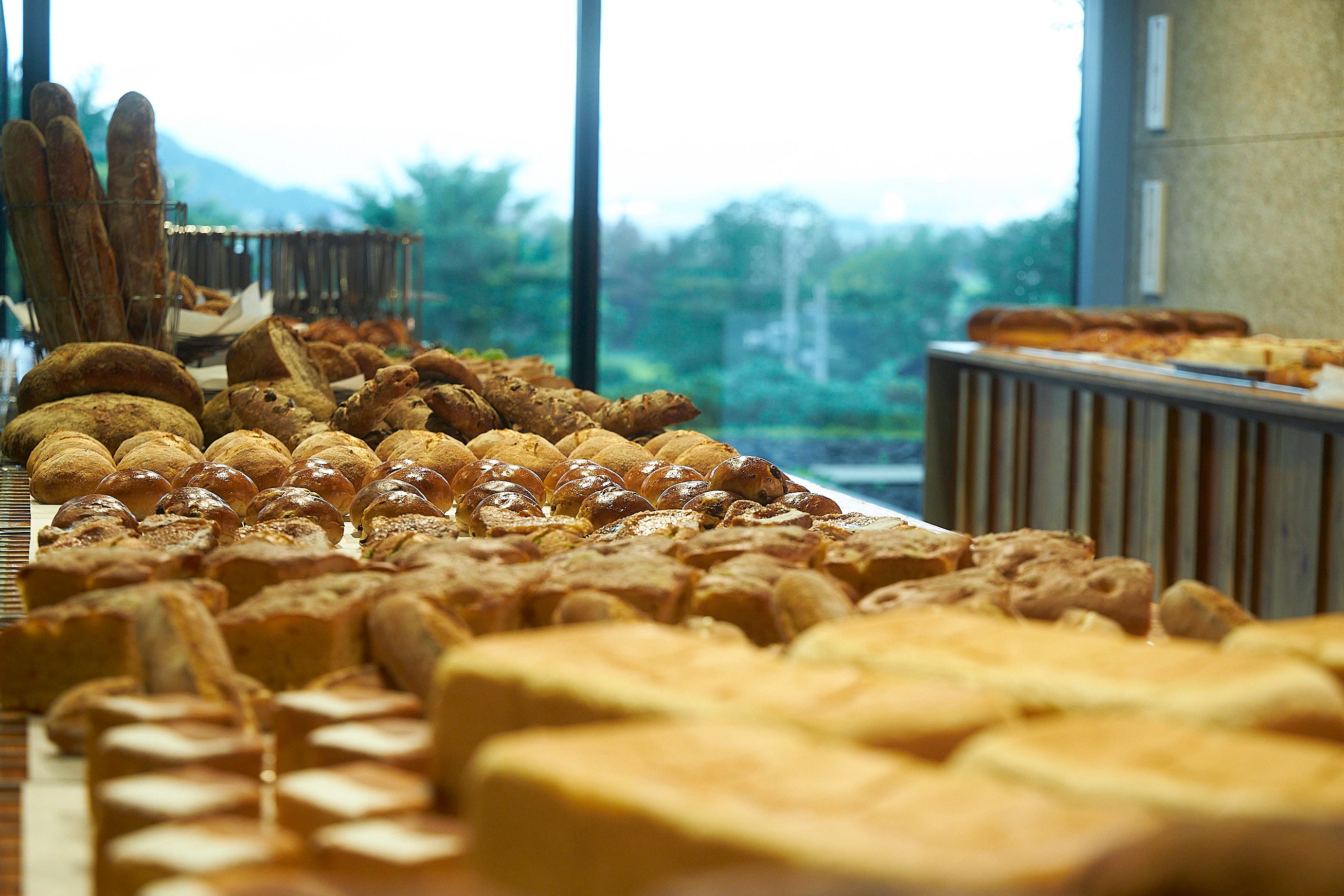 1095BAKERY は、清酒八海山をつくる八海醸造が運営する「魚沼の里・猿倉山ビール醸造所」内にあります。八海山の仕込み水と天然酵母を使い、手間を惜しまずオールスクラッチ製法で、食事やお酒など様々なシーンに合う焼きたてパンを提供します。
